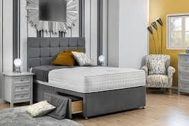 Mattress- 1500 pocket spring unit, Body contouring memory foam & polyester fillings, Rod edge support, Soft knitted fabric, Hand tufted, Handles & air vents, Turnable mattress, Memory foam on one side, Rebound polyester on the other.